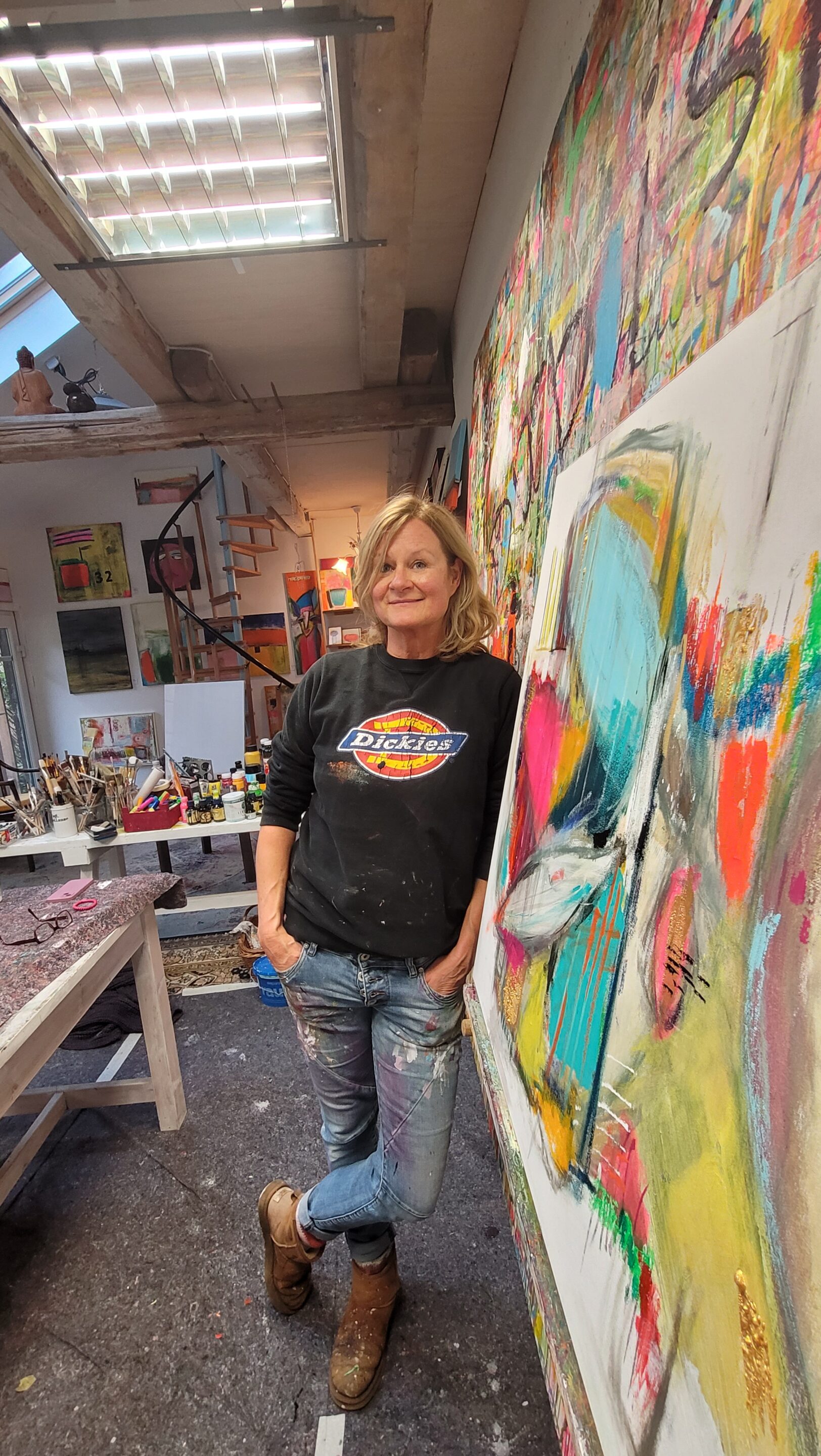 Mein lieber Mann hat hier auf unserem Hof ein Atelier für mich ausgebaut und wunderschöne Ausstellungsräume geschaffen, in denen jedes Jahr Ausstellungen stattfinden.