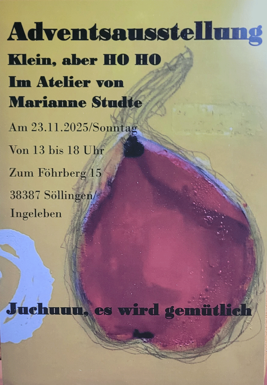 Email info@mariannestudte.de Atelier Zum Föhrberg 15,38387 Söllingen-Ingeleben Telefon: +49 170 3654208 Impressum Datenschutz